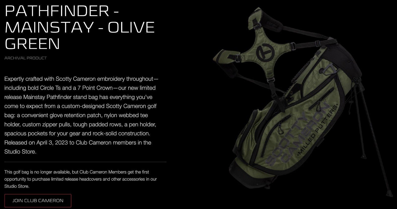 *NEW* Scotty Cameron Circle T 2023 Masters Olive Green Mainstay Pathfinder Stand Bag
