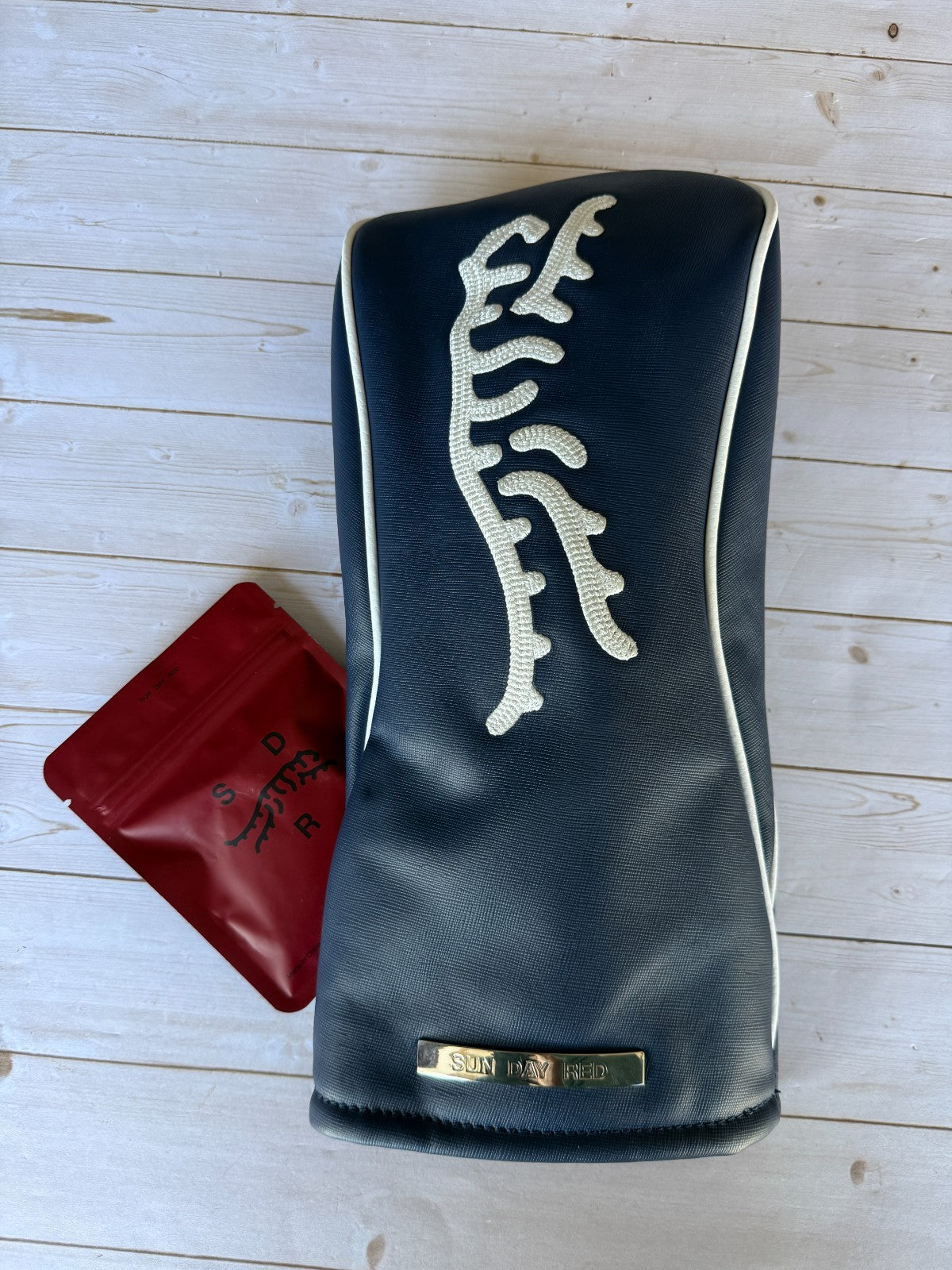 The *NEW* Sun Day Red x Vessel Navy Driver Headcover is a stylish and functional accessory for golf enthusiasts. Made in collaboration with Sun Day Red and Vessel, this headcover features a magnetic closure for secure and convenient storage. The navy color adds a touch of sophistication to your golf equipment, while the durable design protects your driver from wear and tear. Perfect for avid golfers looking to enhance their gear with quality and style.
