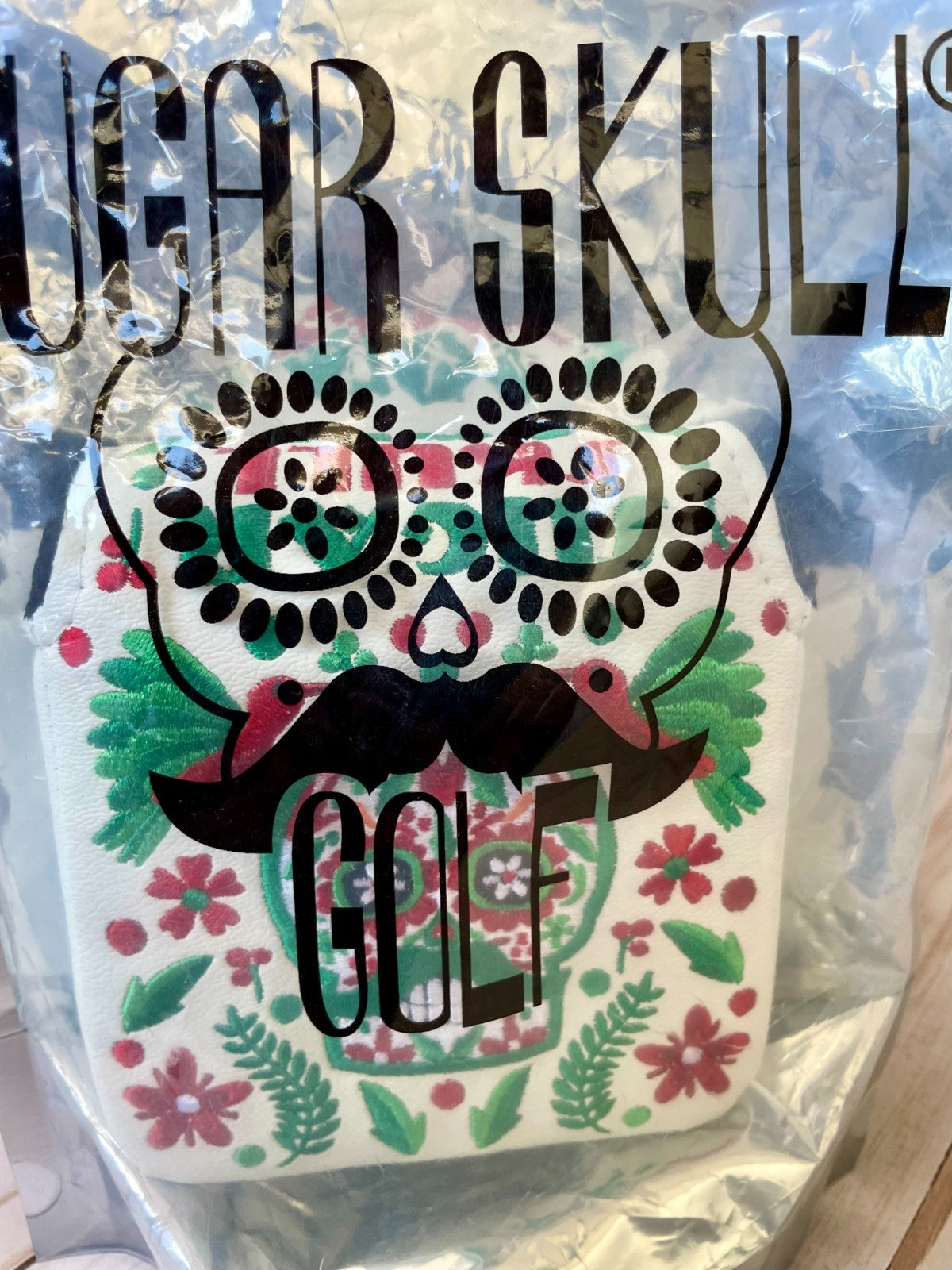 The *NEW* Sugar Skull Golf SEALED 2023 Cinco de Mayo Mallet Head Cover is a stylish and unique accessory for golf enthusiasts. Made of durable vinyl material, this putter head cover features a white color with a Velcro enclosure for easy installation and removal. The Sugar Skull Golf branding adds a touch of personality to your golf gear, while the mallet design ensures a secure fit on your club. Perfect for celebrating Cinco de Mayo or any time you want to add a festive touch to your golf equipment.