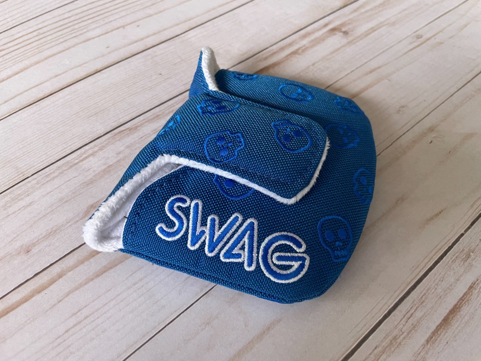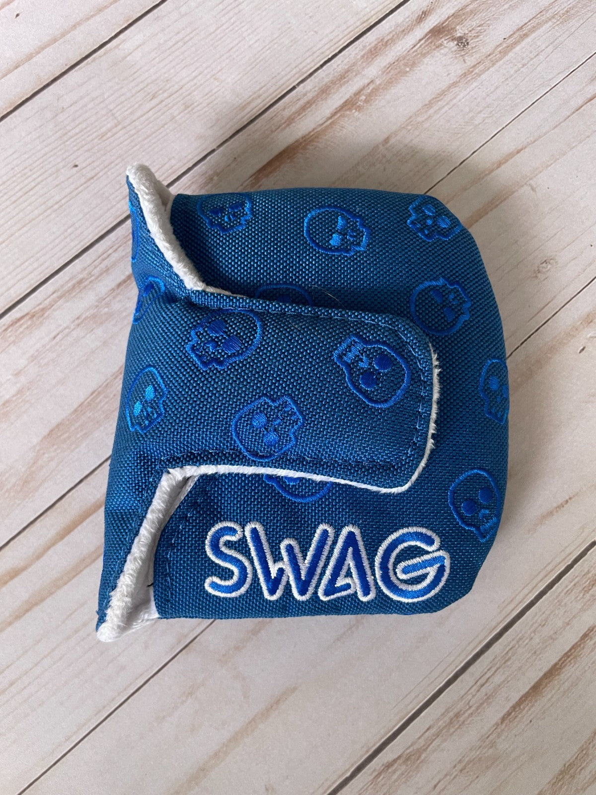 The *NEW* SWAG Golf NOOB 2023 Black Friday 1/12 Blue Head Cover is a premium quality vinyl putter head cover designed specifically for golf enthusiasts. Featuring a magnetic closure for easy attachment, this stylish blue head cover is a must-have accessory for any golfer. With the exclusive NOOB model and the renowned SWAG Golf brand, this limited edition Black Friday release is sure to add a touch of sophistication to your golf gear.