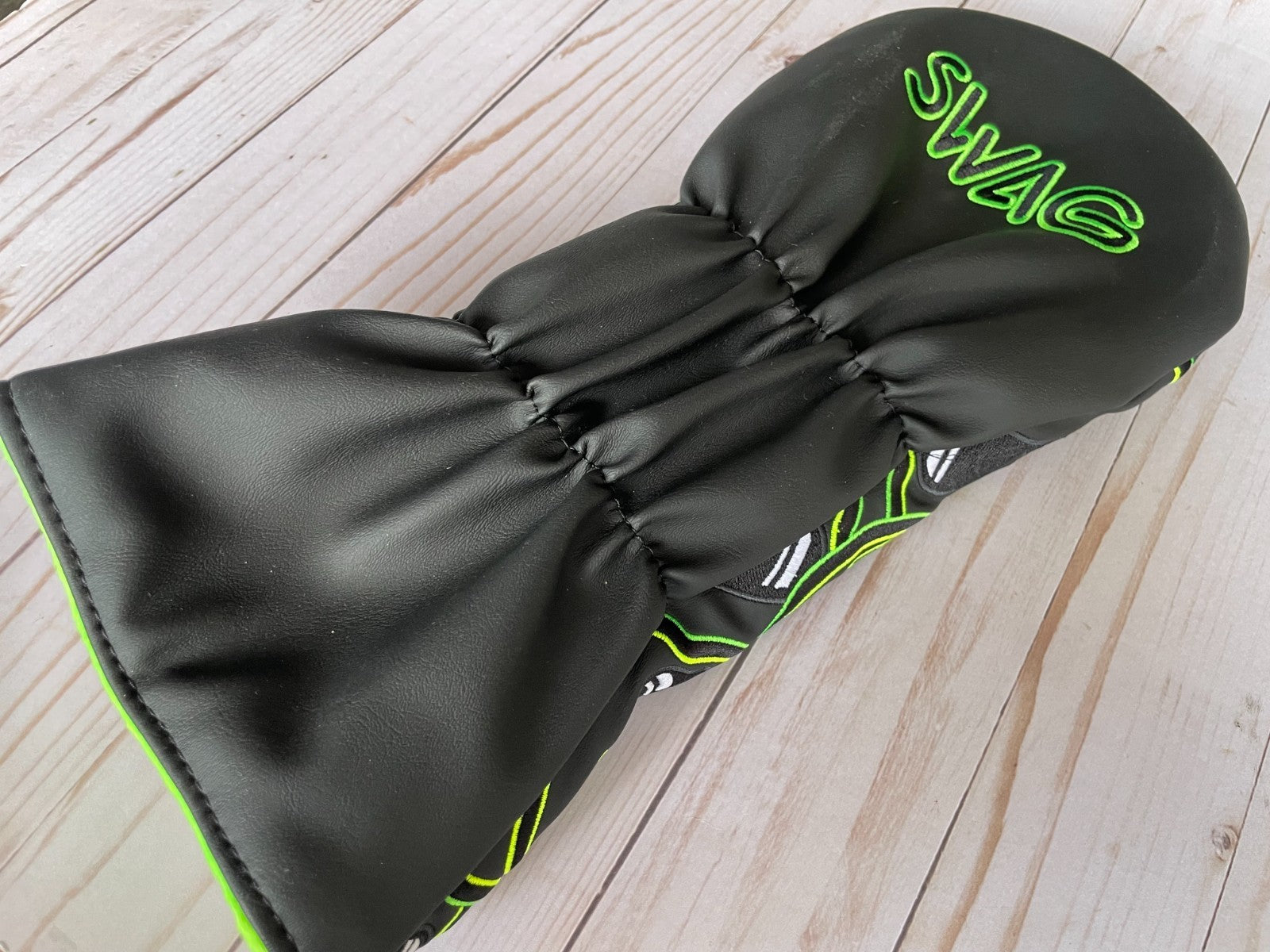 The *NEW* SWAG Golf NOOB Eclipse Ecto Flare Stacked Skulls Special Head Cover is a unique and stylish addition to any golfer's accessory collection. Made of durable vinyl material, this black driver head cover features the signature SWAG Golf branding with a NOOB model design. Designed specifically for golf enthusiasts, this special head cover adds a touch of personality and flair to your golf gear while also protecting your club in style. Perfect for fans of golf and those looking to make a statement on the course, this head cover is sure to stand out in any golfer's collection.