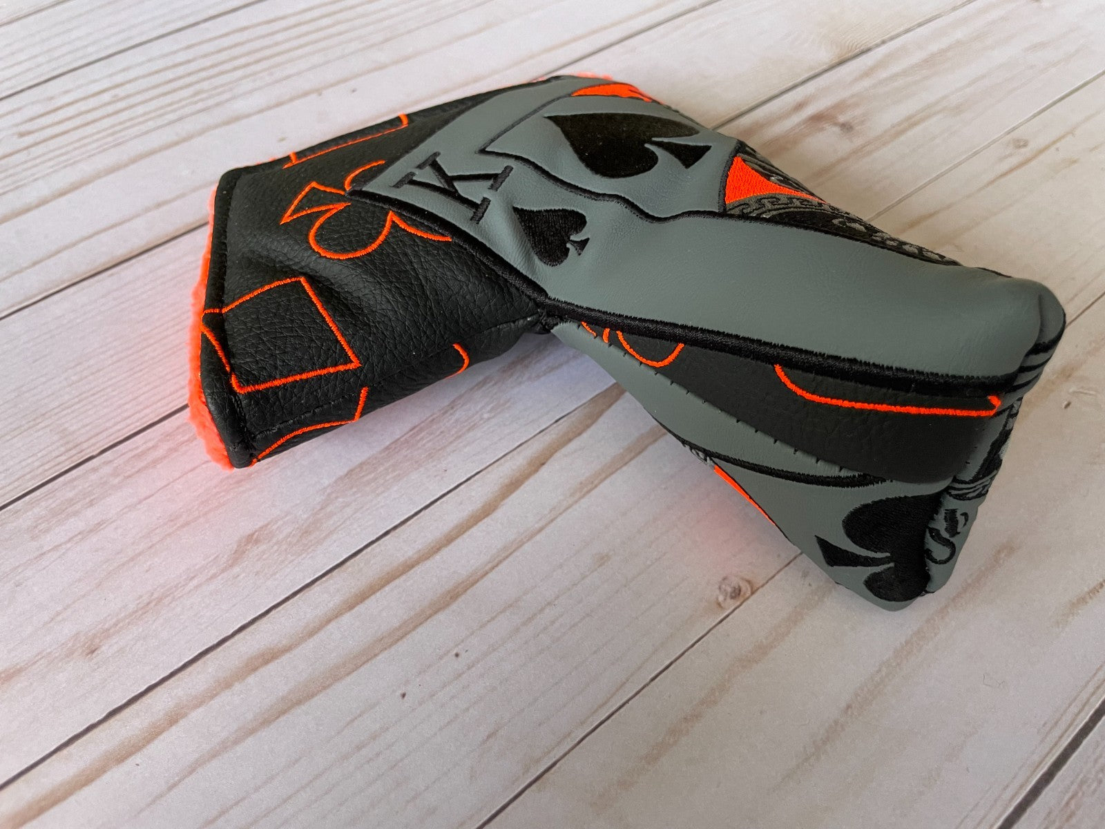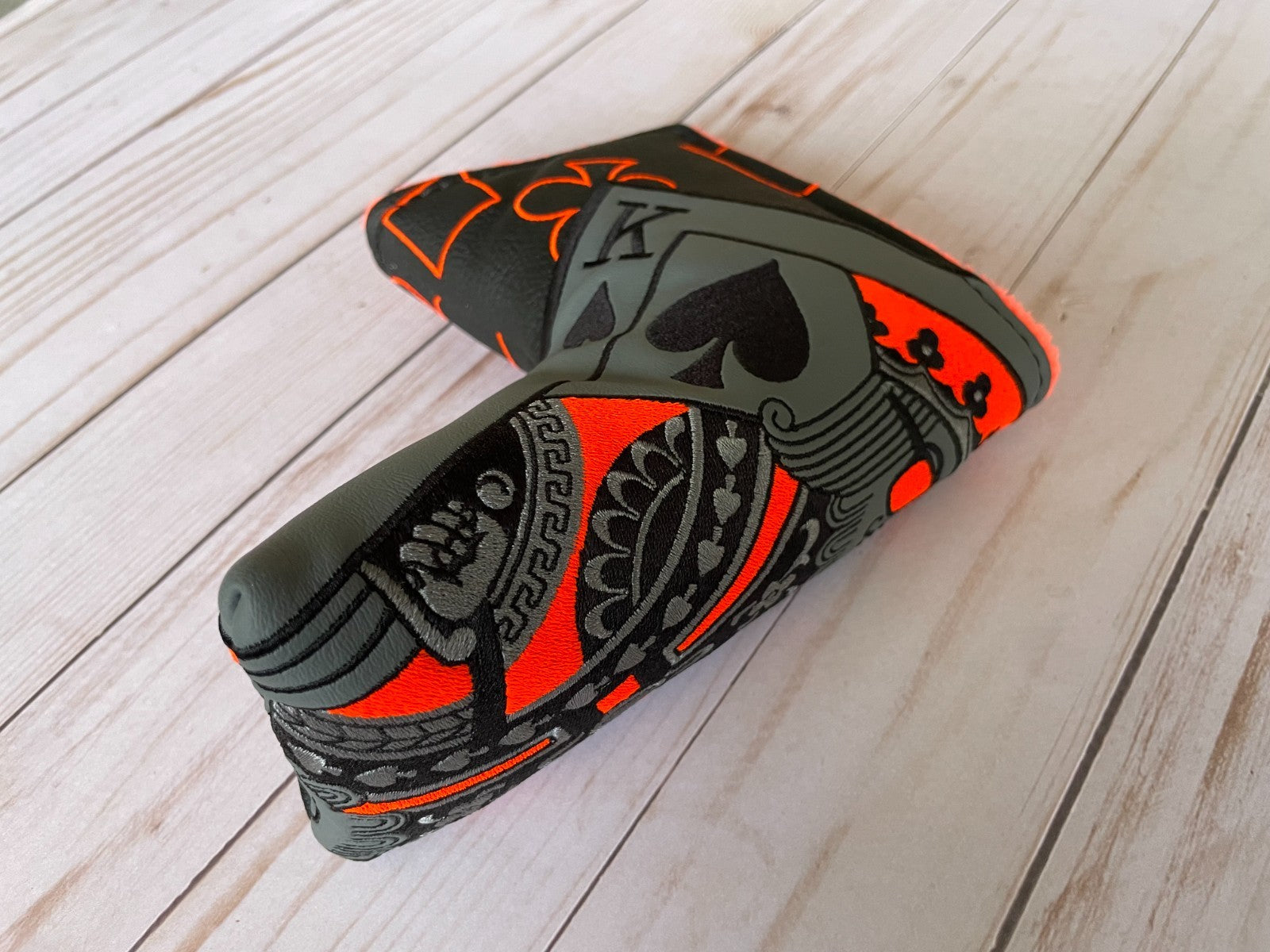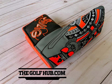 The *NEW* SWAG Golf NOOB Neon Roulette King Orange 1/100 Blade Head Cover is a stylish and high-quality putter head cover designed for golf enthusiasts. With a sleek black color and a magnetic closure feature, this vinyl cover adds a touch of sophistication to your golf gear. The limited edition NOOB model from SWAG Golf ensures that your blade putter is not only protected but also looking good as new on the course. Perfect for golfers looking to add a unique and eye-catching accessory to their collection.