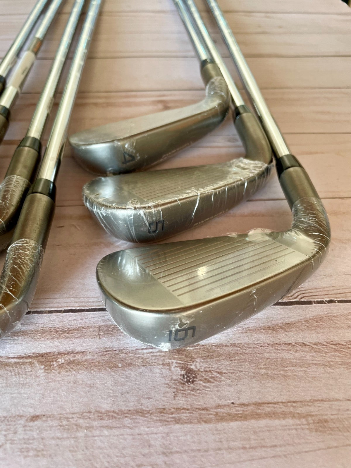 The *NEW* Cobra DarkSpeed 4-P (7pcs) Iron Set features clubs from the renowned brand Cobra, designed for right-handed golfers. With a sleek DarkSpeed model, this set includes 7 pieces of iron clubs, perfect for enhancing your golf game. The KBS Lite shafts provide added control and stability, making this set a high-quality choice for serious golfers looking to improve their game with a trusted brand like Cobra.